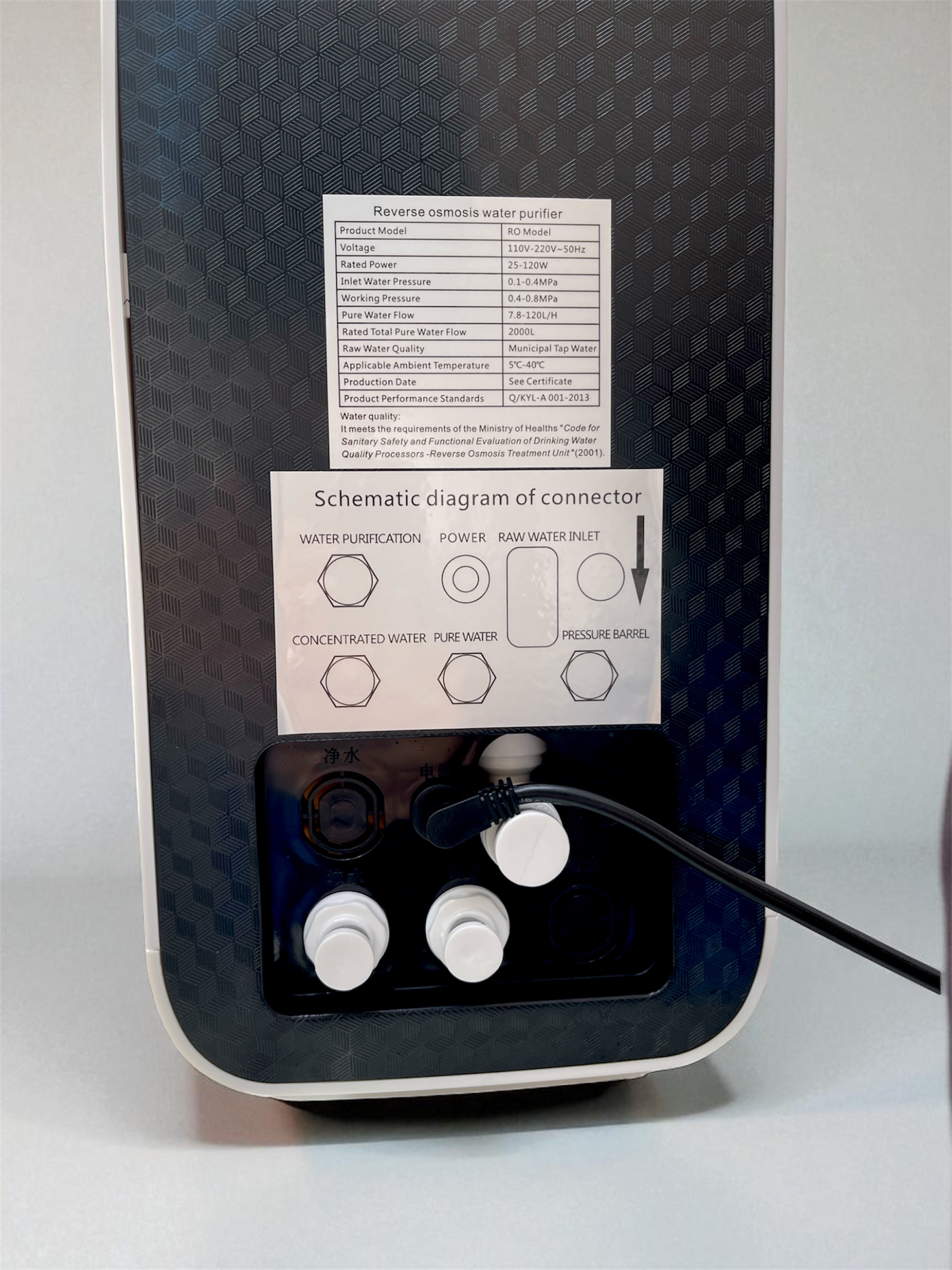 يتم توصيل الجهاز بالماء والكهرباء.